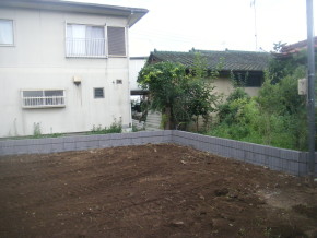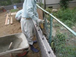 境界まわりのブロック積を行いました。
